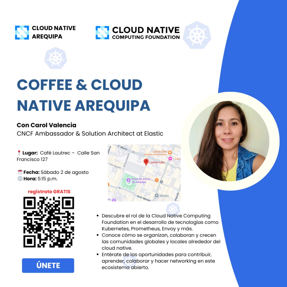 En el CNCF Chapter Arequipa, nos enfocamos en fomentar y sostener un ecosistema de software moderno basado en contenedores 🐳, microservicios, orquestación y otras tecnologías nativas de la nube 🌐.